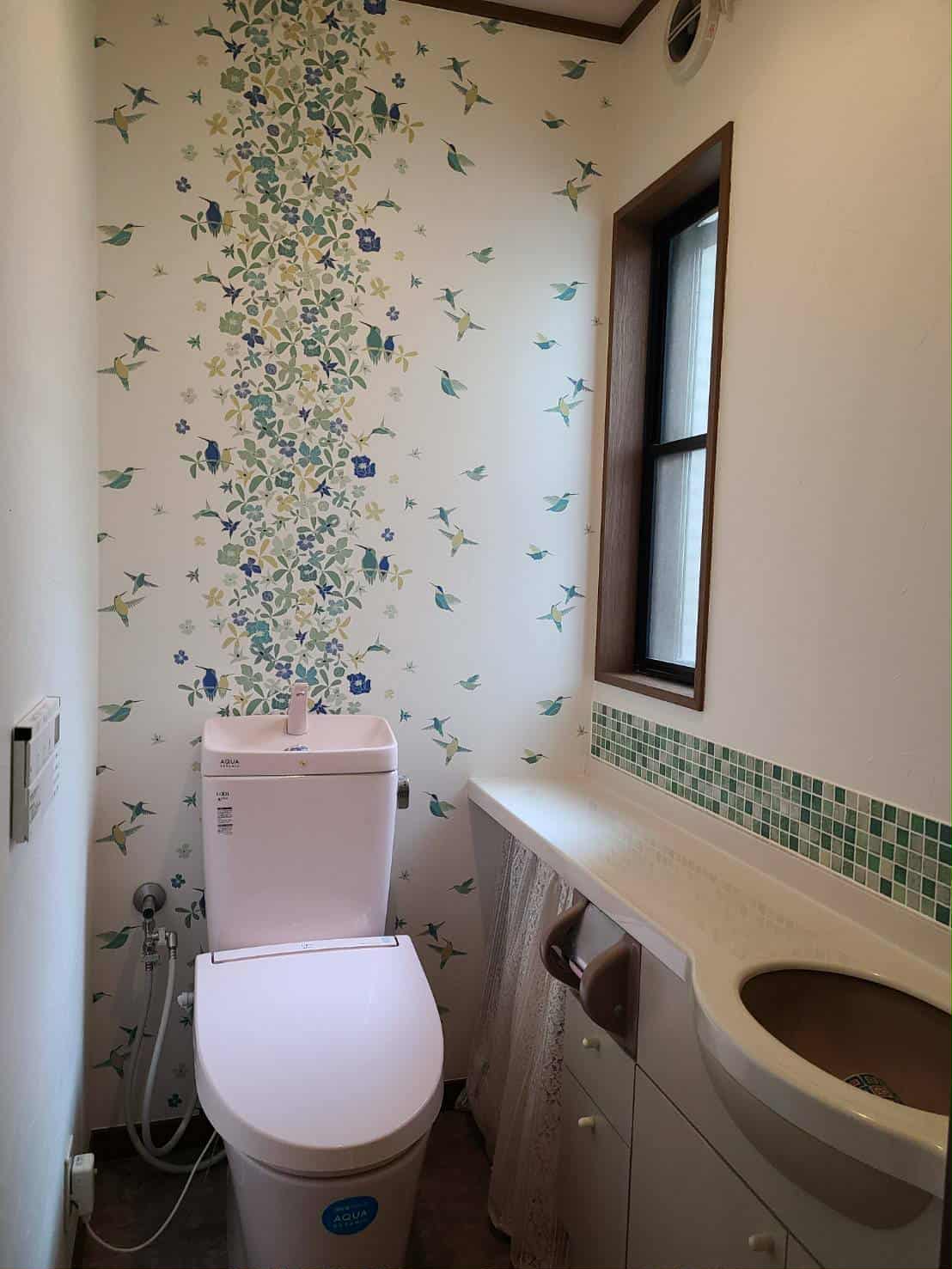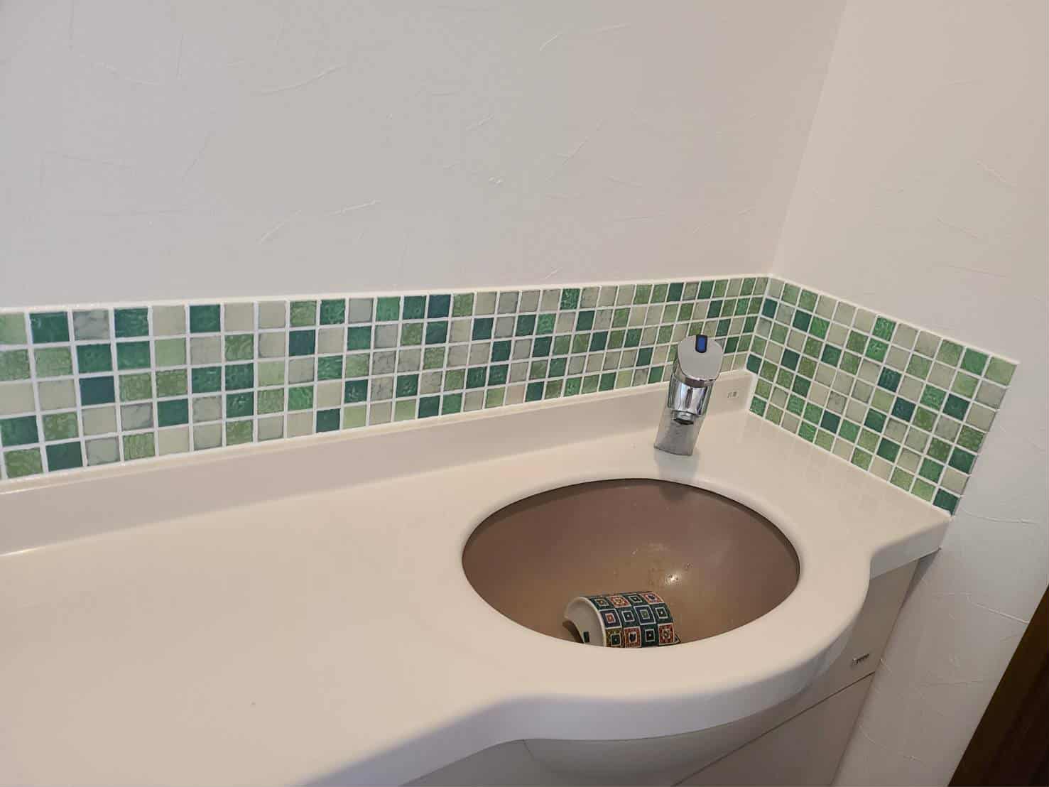 | 内容 | トイレカウンターと手洗いの壁回りにグリーンのタイルを貼って明るい雰囲気に |